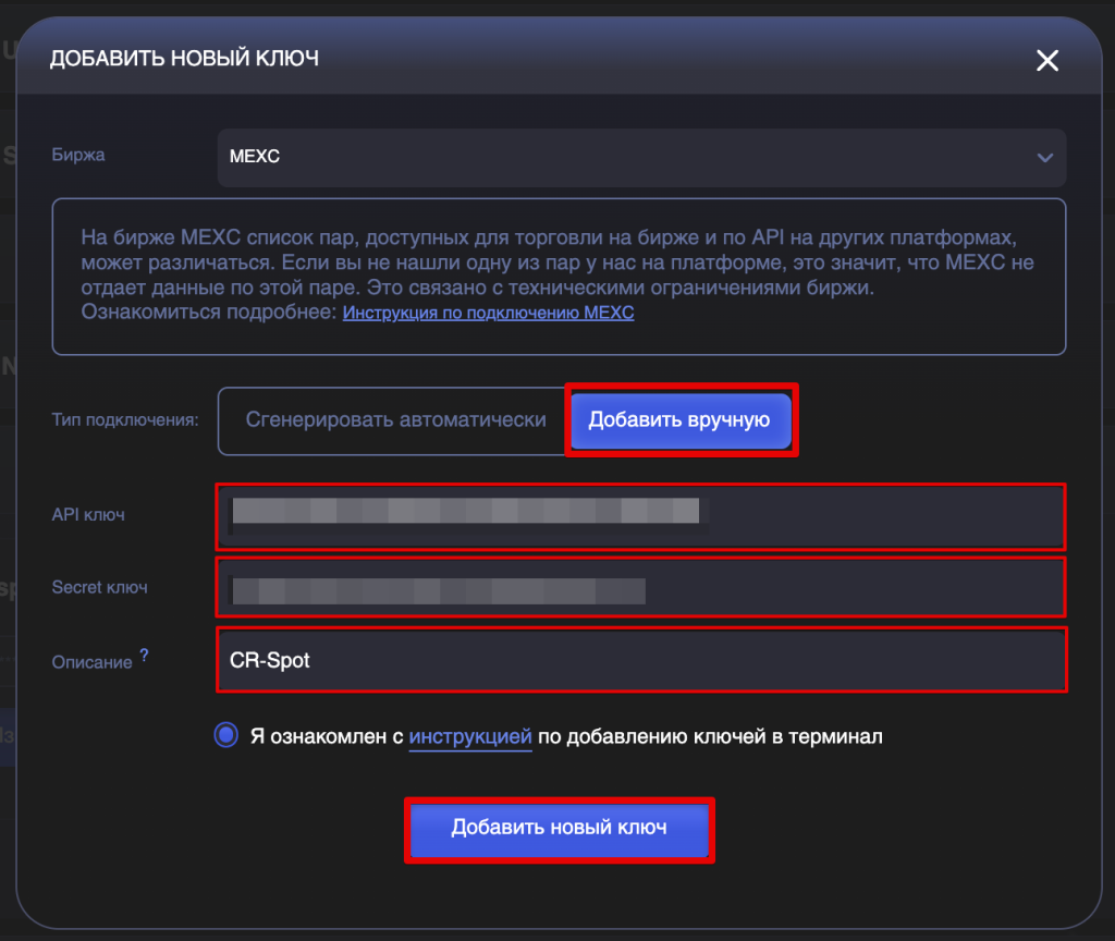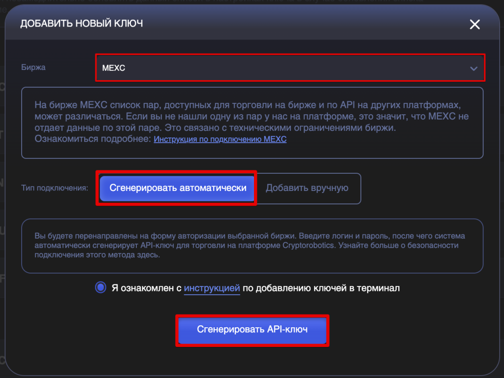 Вы можете создать API-ключи для биржи MEXC двумя способами: