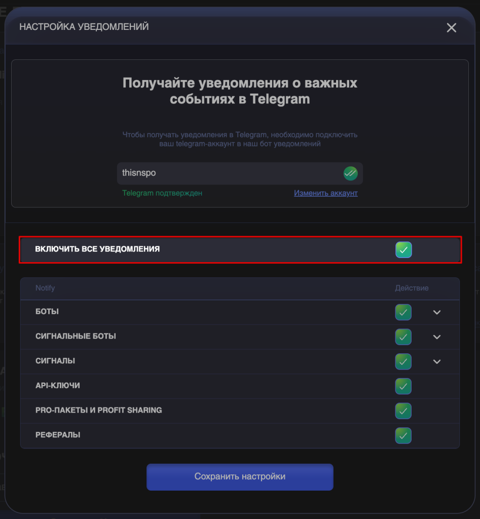 • Как настроить получение уведомлений в Telegram?